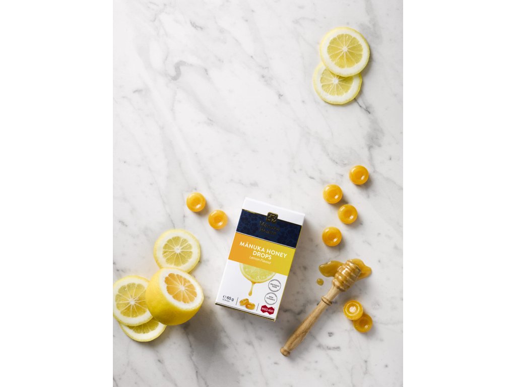 Bonbóny s Manukovým medem MGOTM 400+ a vitamínem C, ochucené citrónem,doplněk stravy